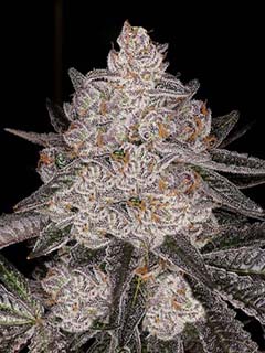A potent indica marijuana strain. A popular strain crossed with Critical Kush and OG Kush. These buds have dense fluffy popcorn-shaped light minty green nugs with dark orange hairs, rich purple undertones, and a layer of fine translucent trichomes.